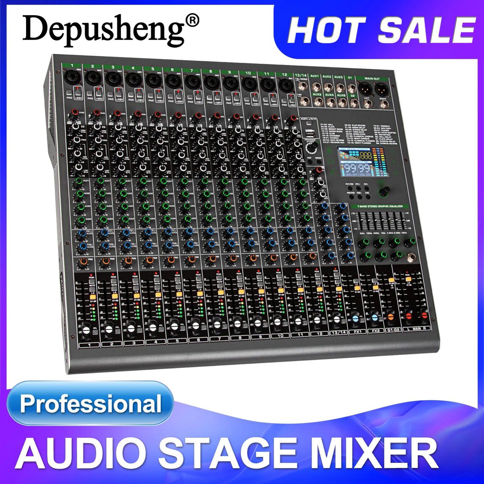 14 Channels Digital Professional Audio Console Mixer Depusheng TG14 Mixing DJ Console USB with 48V Phantom Power Built-in 99 Rev