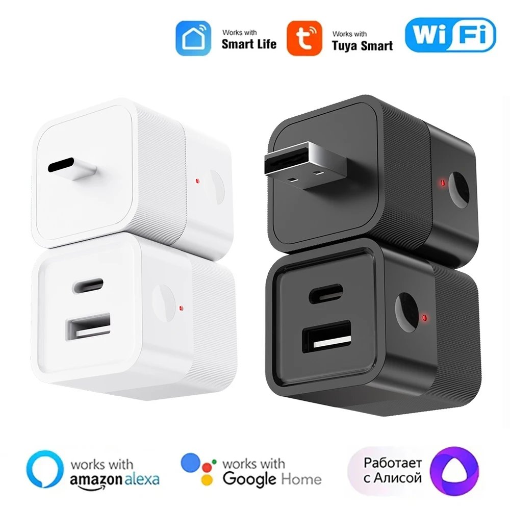 2in1 Tuya Smart WiFi Micro USB Type-C Adaptor Switch 5V Mini USB Power Adaptor Smart Life Control Via Alexa Google Yandex alice