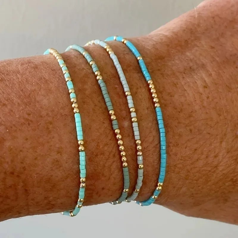 Reply To: 4pcs/set Bohemia Turquoise Color Seedbeads Stretch Bracelet Jewelry Glassbeads Elastic Handmade for Women Girls Daily Wear Gifts