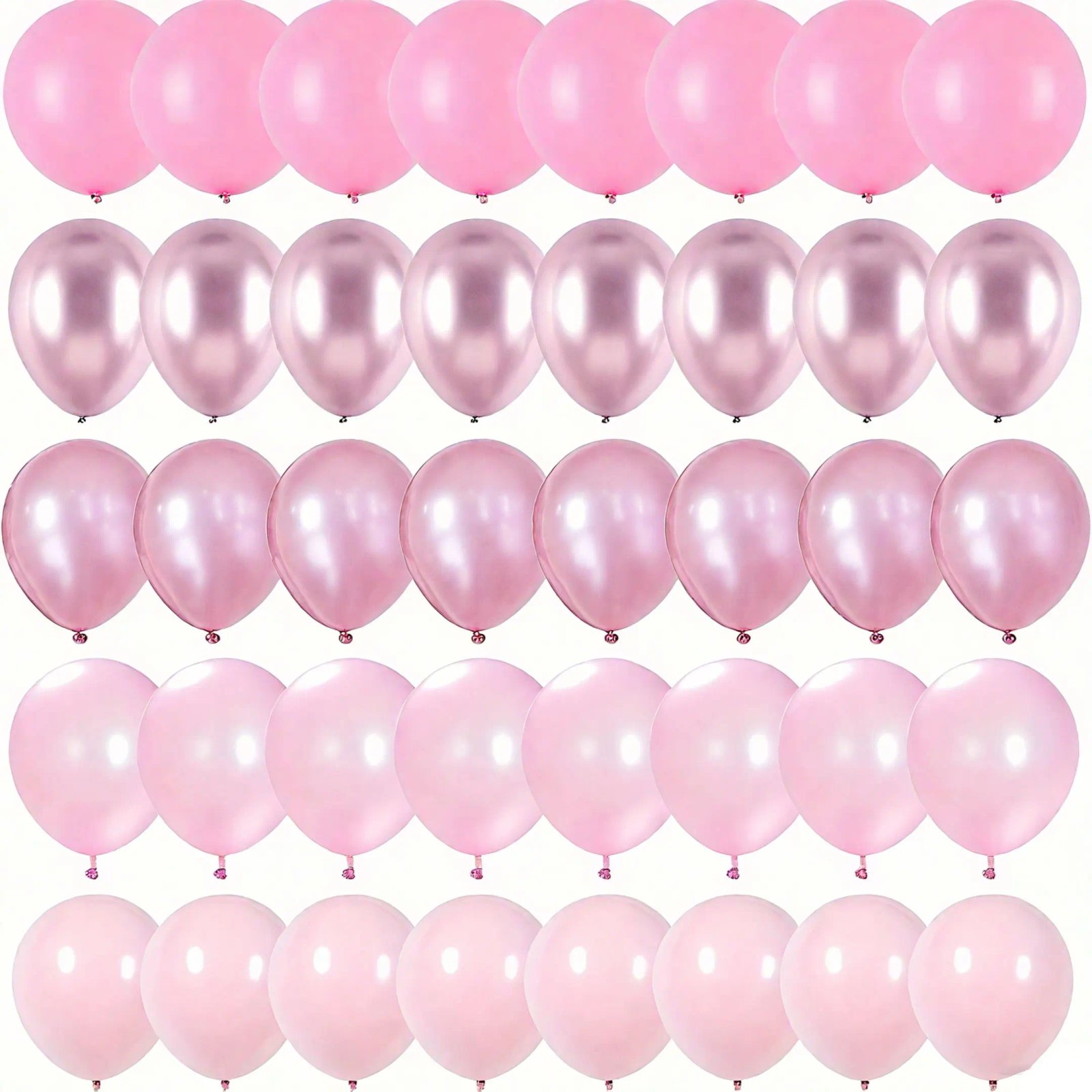50pcs Pink Balloon Set - Chrome Pink, Pearl Pink, Macaron Pink And Various Soft Pink Shades, Suitable For Decorating Backgrounds