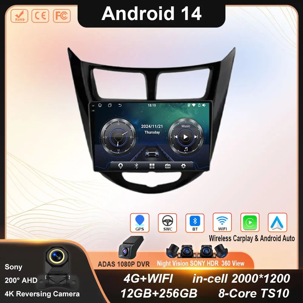 Android 14 Car Radio For Hyundai Solaris Accent I25 2010 2011 2012 2013 2014 2015 2016 GPS Navigation QLED BT Head Unit 4G WIFI