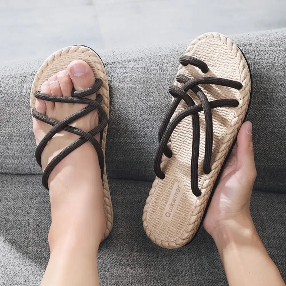 Fashion EVA Outer Wear Shoes Personality Soft Men Flip Flops Footwear Beachwear Braided Rope Flats Slippers Beach