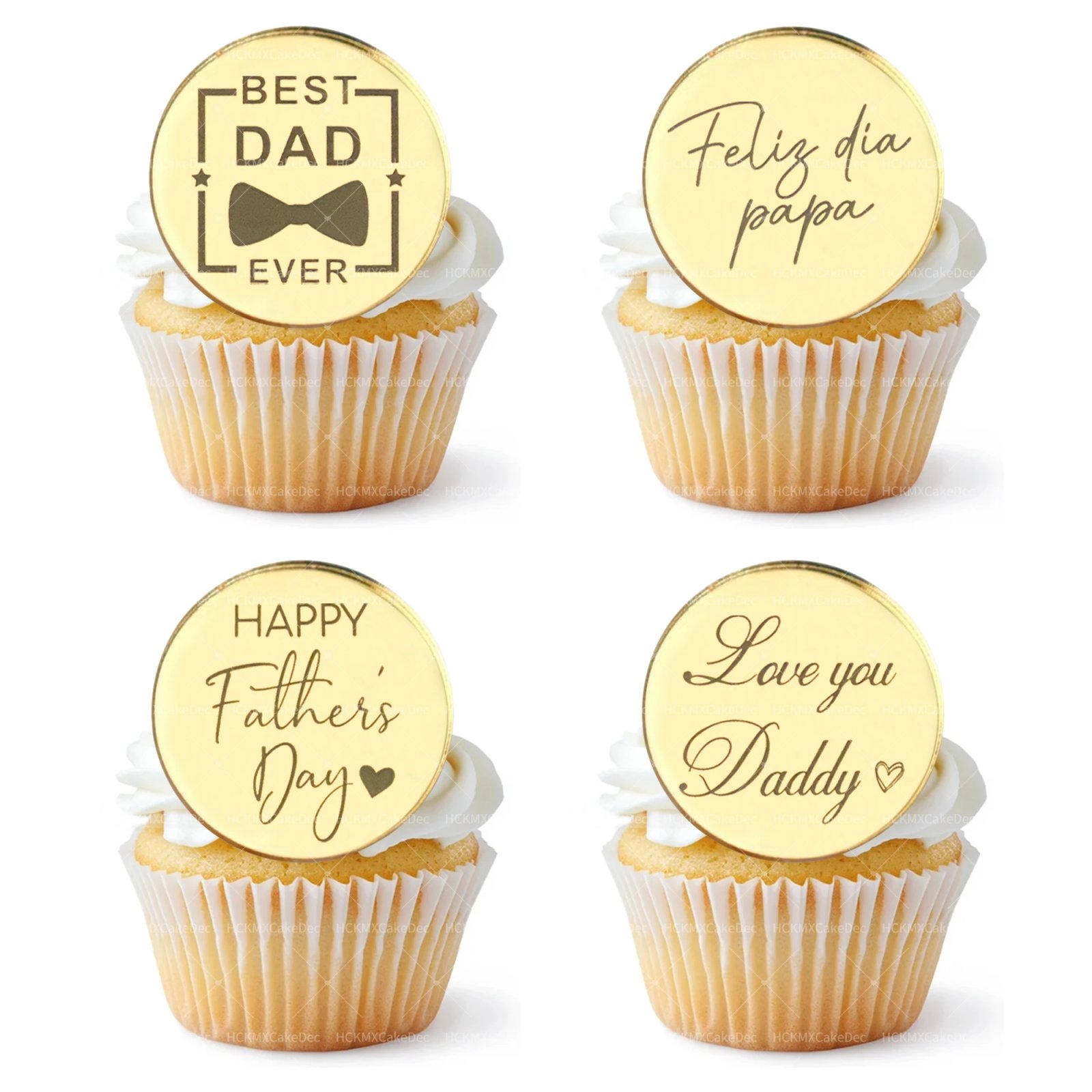 Gold Acrylic Spanish Feliz Dia papa Best DAD Ever LOVE YOU Daddy Cupcake Toppers for Happy Father's Day Birthday Party Decor