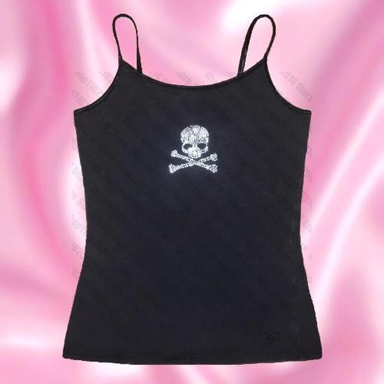 Skull Rhinestones Crop Tops Women Grunge Clothes Y2k Aesthetic Clothing Summer Emo Women’s Corset Harajuku 90s Clothes Vintage