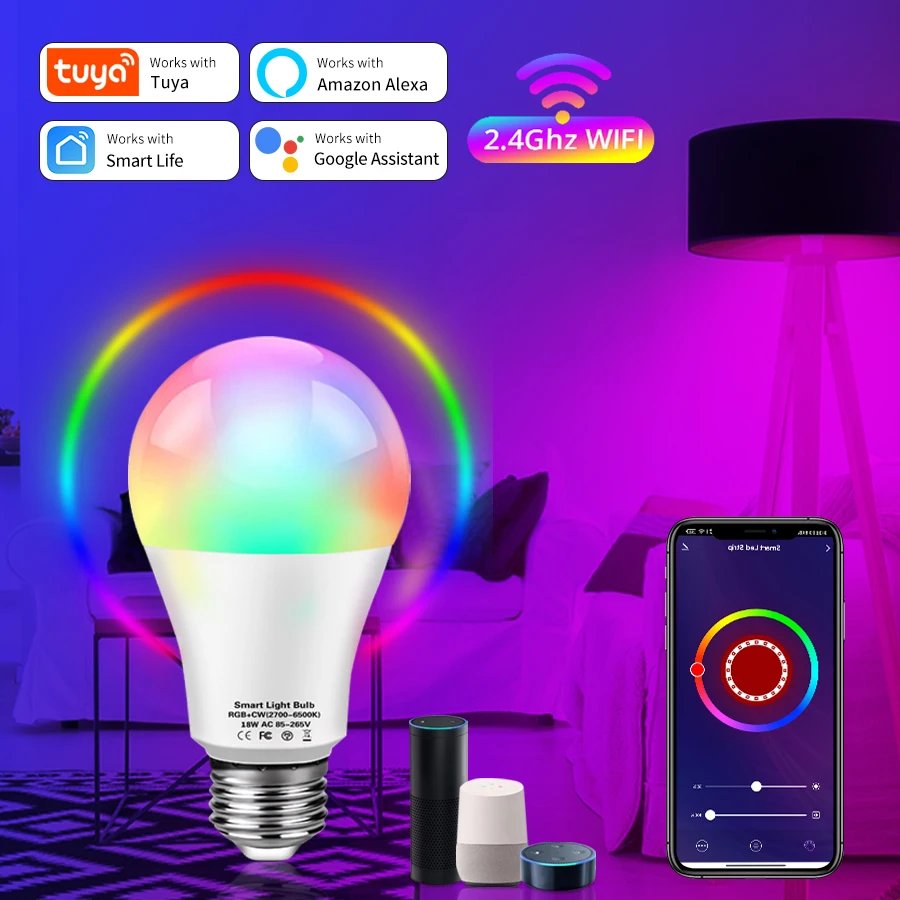 Tuya WIFI Smart LED Bulb Smart Life APP Operated 12W 15W 18W E27 85-265V Alexa Lamp Google Assisatnt Yandex Alice Voice Control